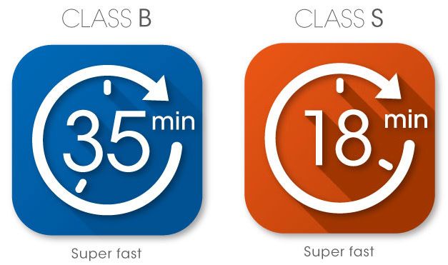 The copper chamber and adaptive heat system allows sterilisation in 18 and 35 minutes under Class S and B standards, respectively. (Including drying phase.)