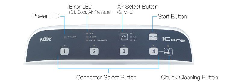 The chuck cleaning system keeps chucks pristine, and the purging select mode allows alteration of purge time depending on the situation for truly comprehensive maintenance. Thanks to its stylish and compact body, iCare is also space efficient and totally in harmony with your working environment.